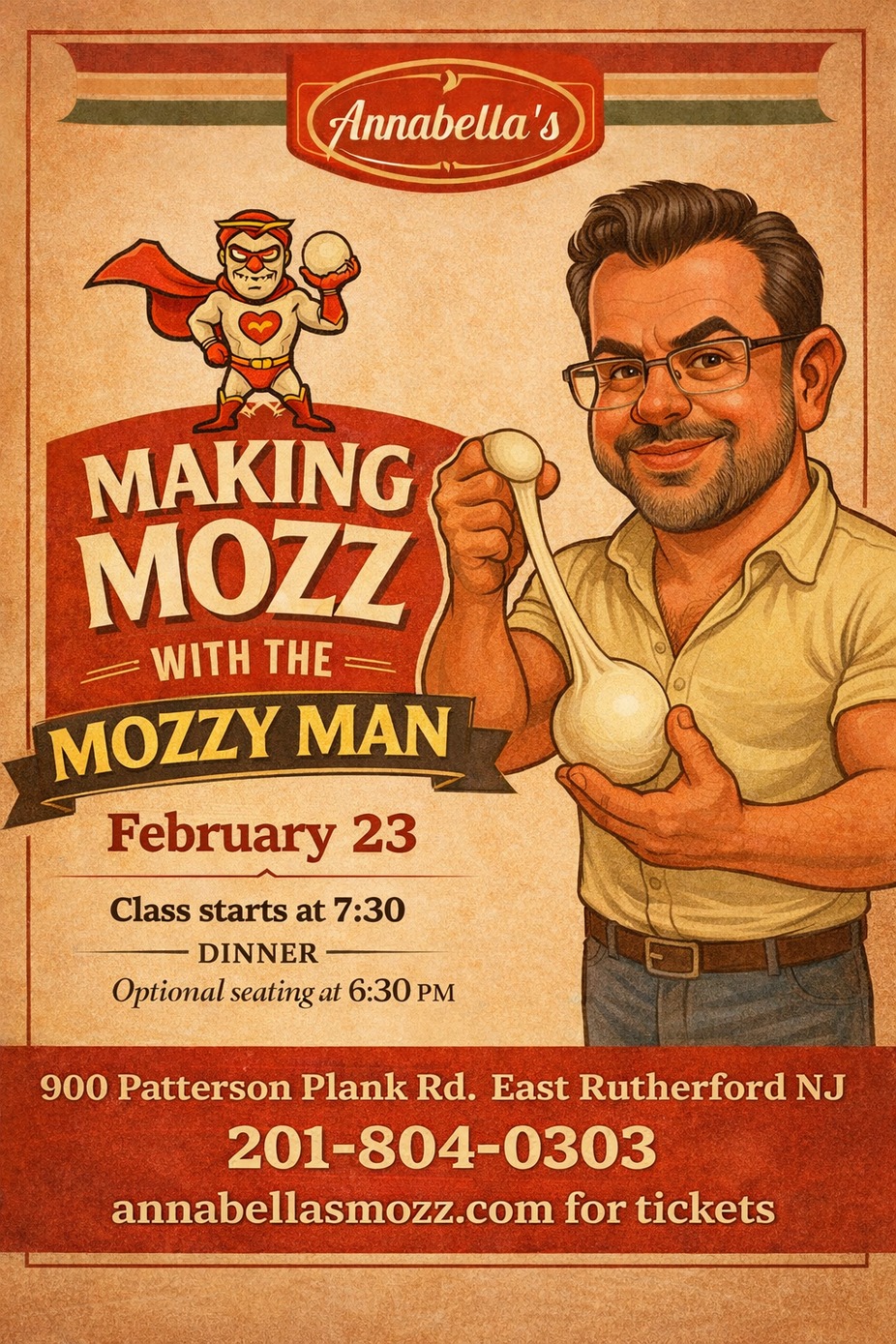 If you’re gonna learn how to make mozzarella why not learn to make it with the Best be here at 7:30 for the class or if you want come a little earlier, around 6:30 so you can eat dinner and make mozz on a full stomach