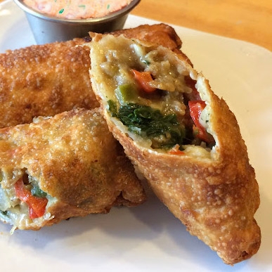 Prosciutto, Mozzarella, Arugula and Roasted Peppers in an Authentic Egg Roll Served with Annabella Sauce