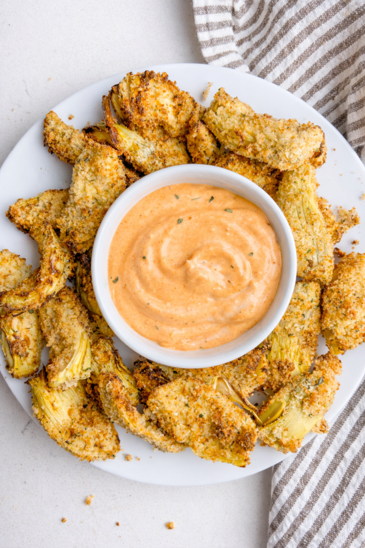 An Annabella Classic Marinated Artichoke Hearts Seasoned, Breaded and Fried with Annabella Sauce of Course