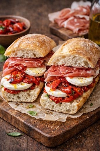Prosciutto, Fresh Mozzarella, and Roasted Peppers